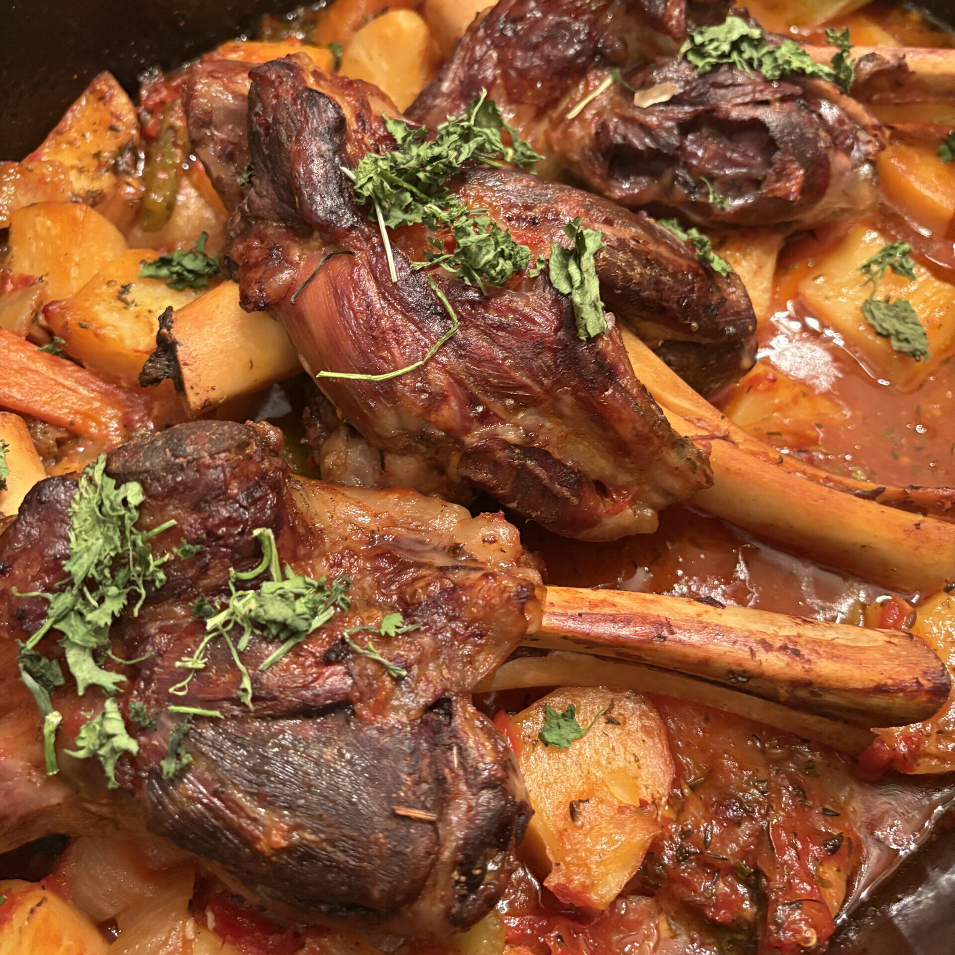 - The potatoes are really good, so you may be tempted to add more, but they also absorb a lot of flavor from the rest of the dish, so keep it at (# of shanks + 1)